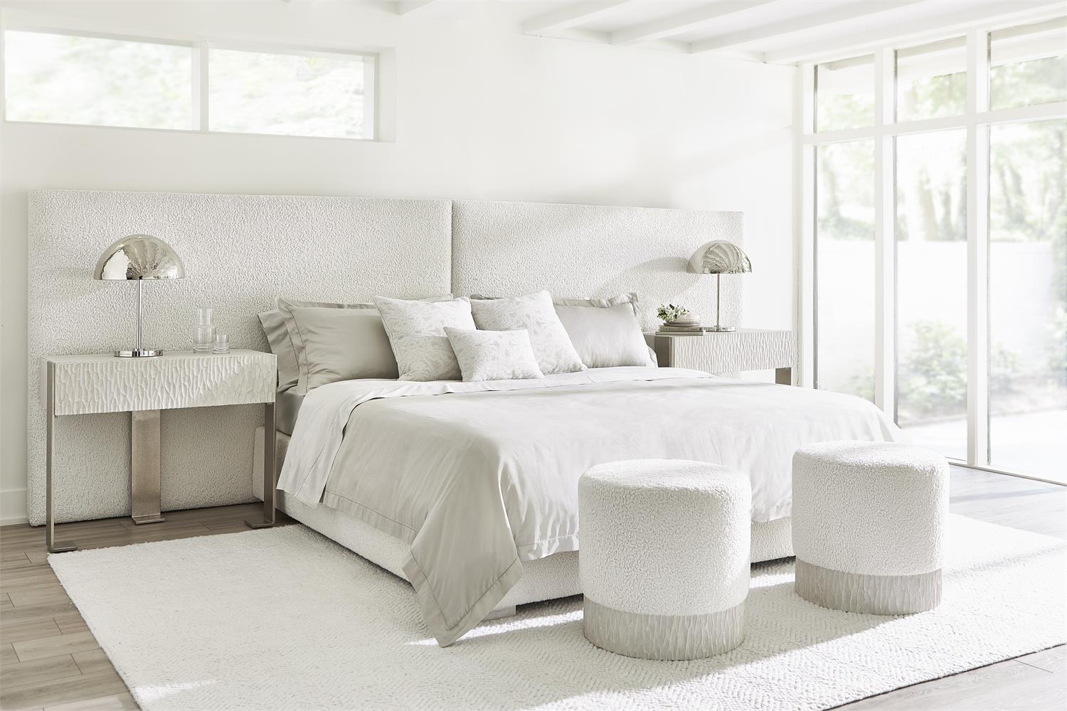 A functional piece of art! Three cast aluminum supports create a structural tripod, curving to the floor to define the legs of the Solaria nightstand. They encompass a drawer box with a chiseled cast resin front and a Weathered bone finish. A two-port USB charger is located on the upper back of the case.