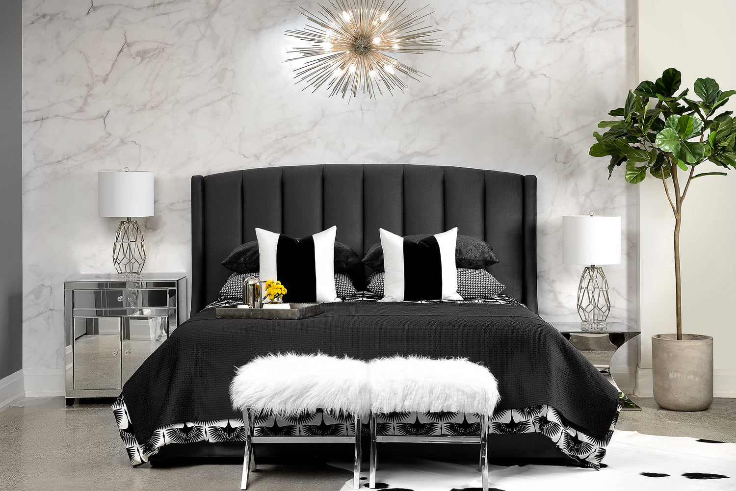The look of Luxury! The Megan Bed features a contemporary channeled back with classic lines and an upholstered base. Bed slats included. Made in Canada.