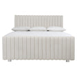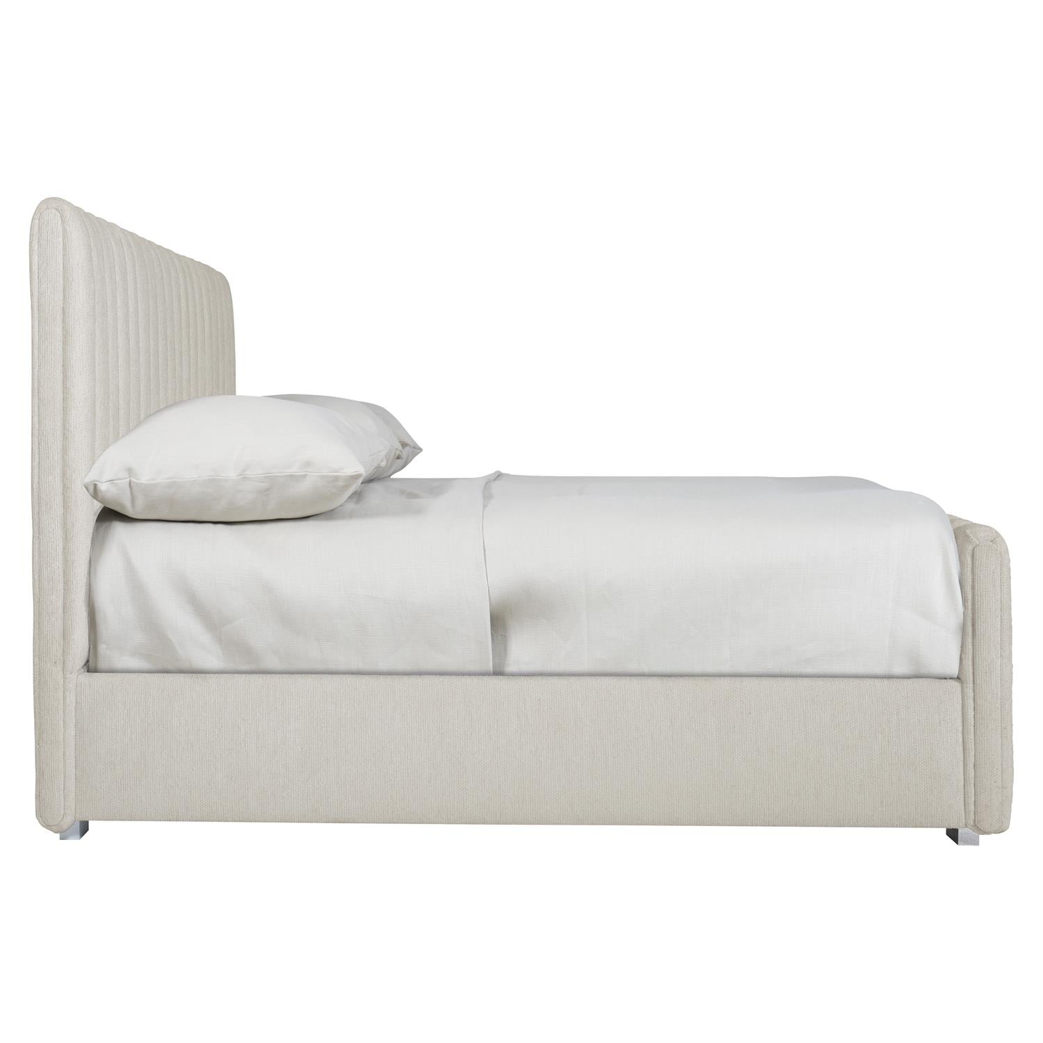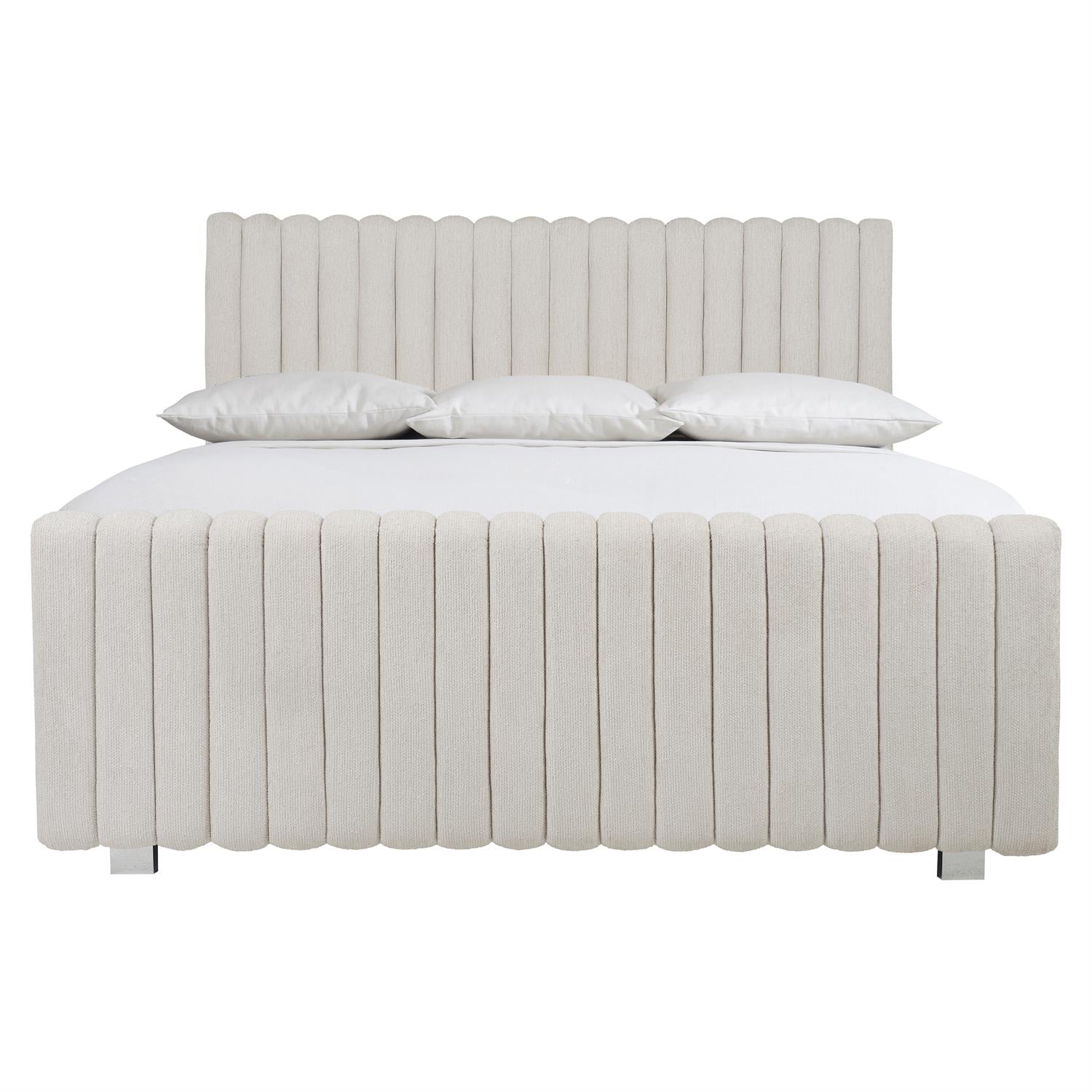 Old Hollywood glamour inspired this Silhouette panel bed. Vertical channels offer both comfort and sophisticated style on the headboard and footboard, and the side panels are upholstered in the same lush fabric. Gleaming metal feet add a captivating final touch of elegance.