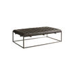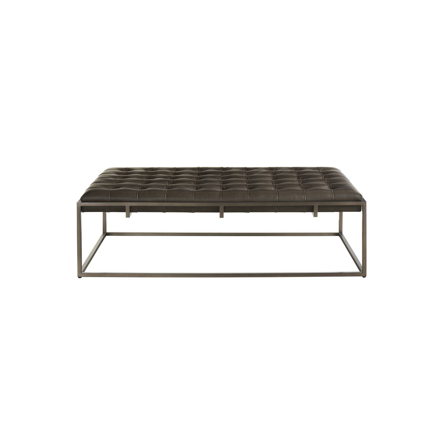 Hudson Iron Grey Leather with a Satin Pewter finish, the Traver Cocktail Ottoman offers a sleek, versatile design that works as a stylish centerpiece, extra seating, or functional surface for your living space.
