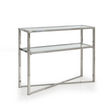 Simple elegance defines the Cross Over Series. The Small Console has the signature X stainless steel frame with a polished chrome finish, and two layers of tempered glass tops.