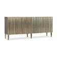 With a look of natural elegance, the German Silver Console has a shimmery finish in German Silver Foil over Mango Solids. With a textured front, the console has four doors and one fixed wood shelf behind each set of doors with soft close hinges. Shelves are removable, and there’s a ventilated background. Looking for the perfect piece of jewelry for your room? Look no further than Hooker's line of accents. Select from character-filled and functional accent tables, chests, credenzas and console tables. Place front and center of your hallway, living room or foyer and top with things you love. Now that's instant style.