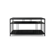 Simple and clean, this console features black glass shelves and a metal frame in black powder coating finish.