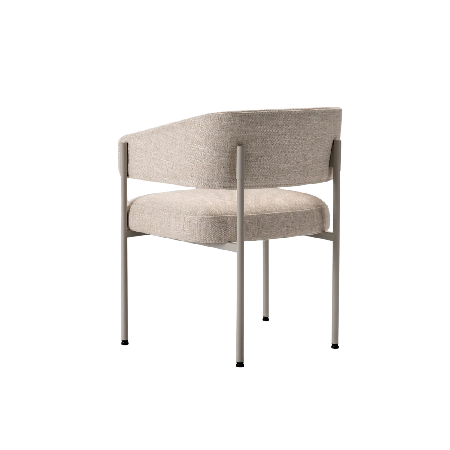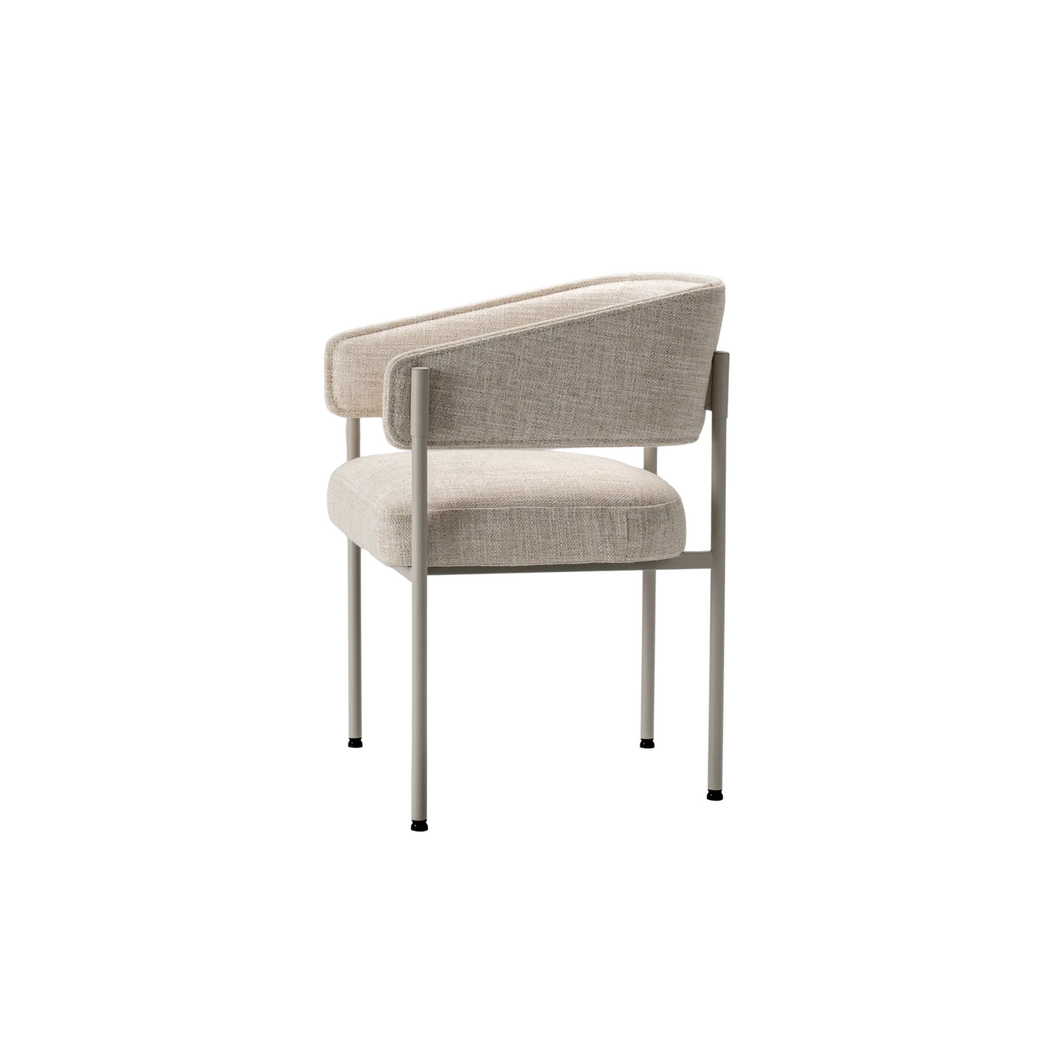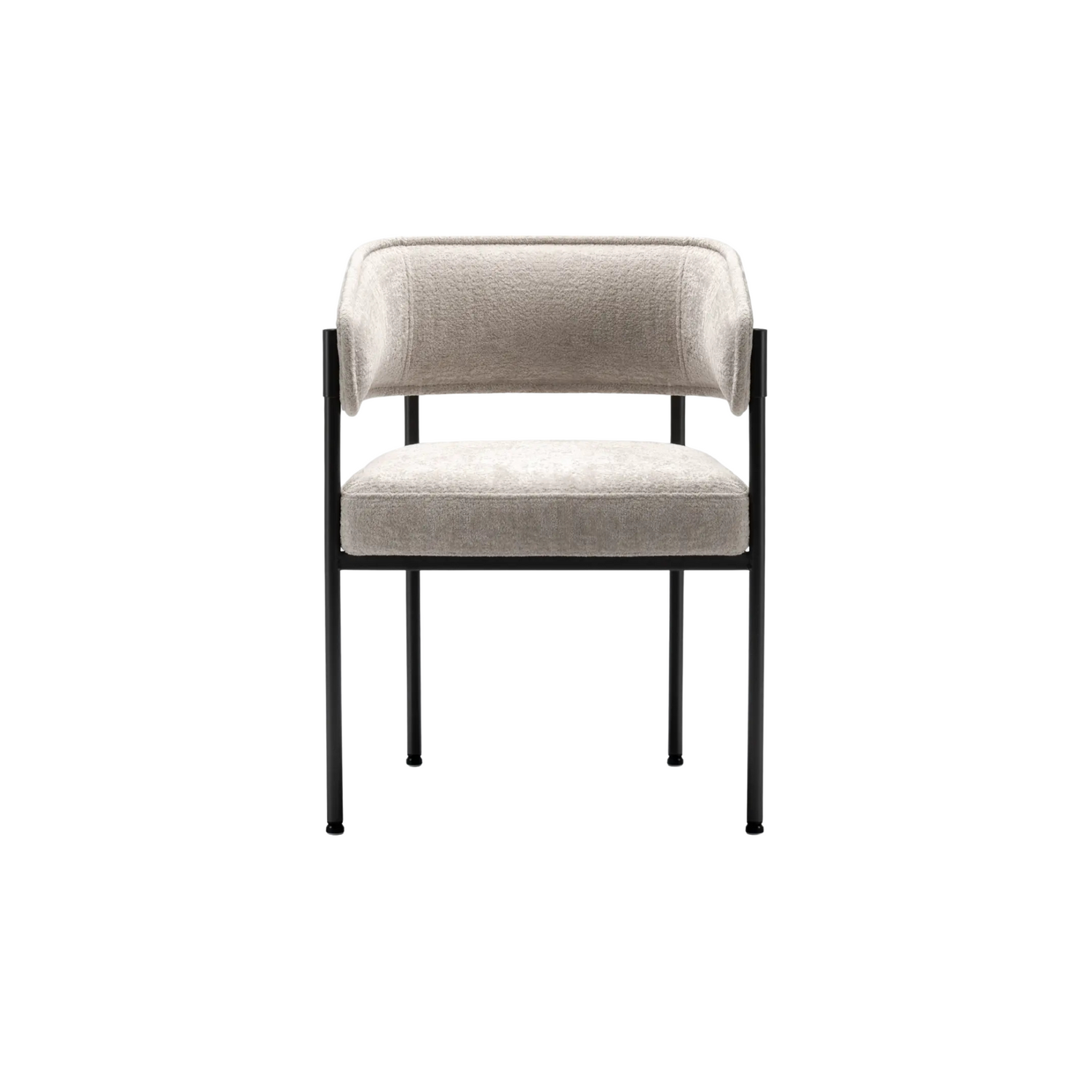 The Alice chair features a modern and contemporary style, characterized by clean lines and a minimalist structure. This enveloping chair stands out with its armrests integrated into the continuation of the backrest. Its fully welded steel frame gives it a robust yet elegant appearance, without compromising on comfort.
