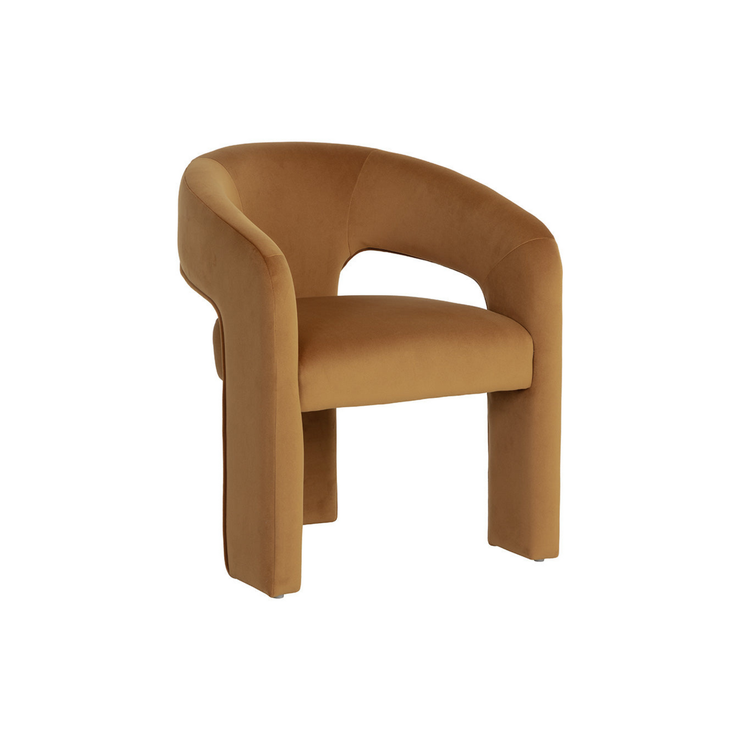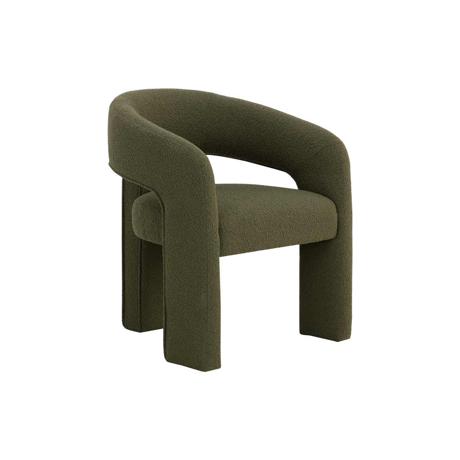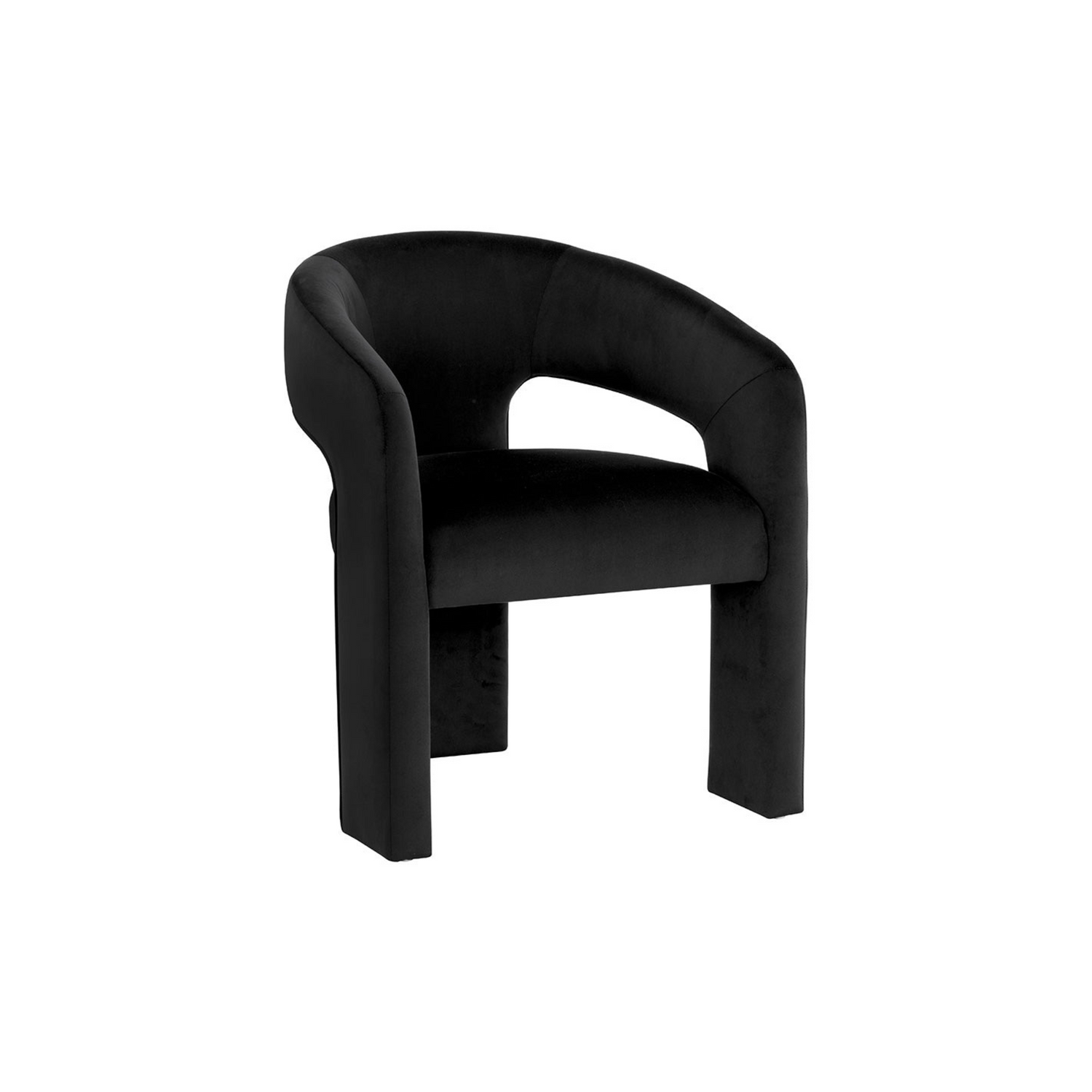 Clean lines and contoured arches add style and structure to this contemporary dining chair. Features a curved backrest and open back for optimal comfort. Eye-catching from all angles. Fully upholstered.