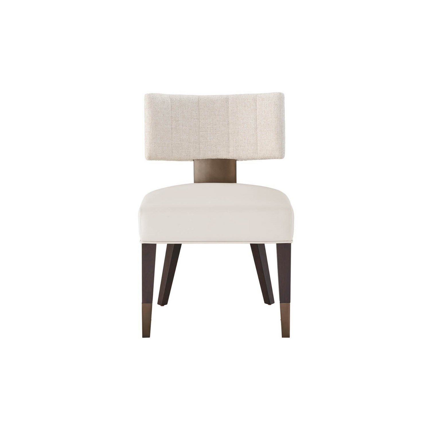 Tapered legs and antique satin brass metal accents add a touch of sophistication to the Klismos inspired back of the Loleta Side Chair.