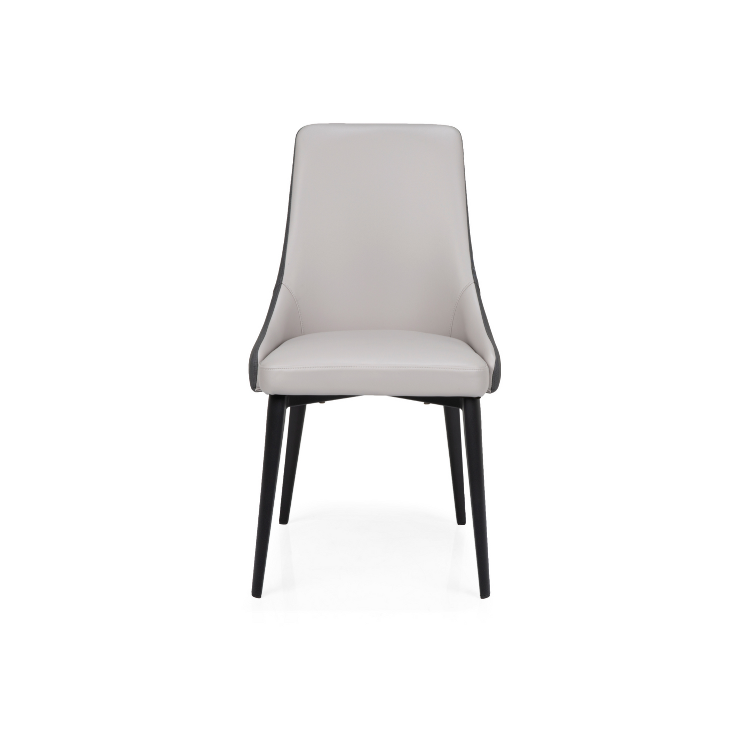 Crafted with a contemporary design, this condo dining chair combines the luxurious look of faux leather with the sleekness of matte black metal legs, creating a modern aesthetic that complements various decor styles. Made in Canada.