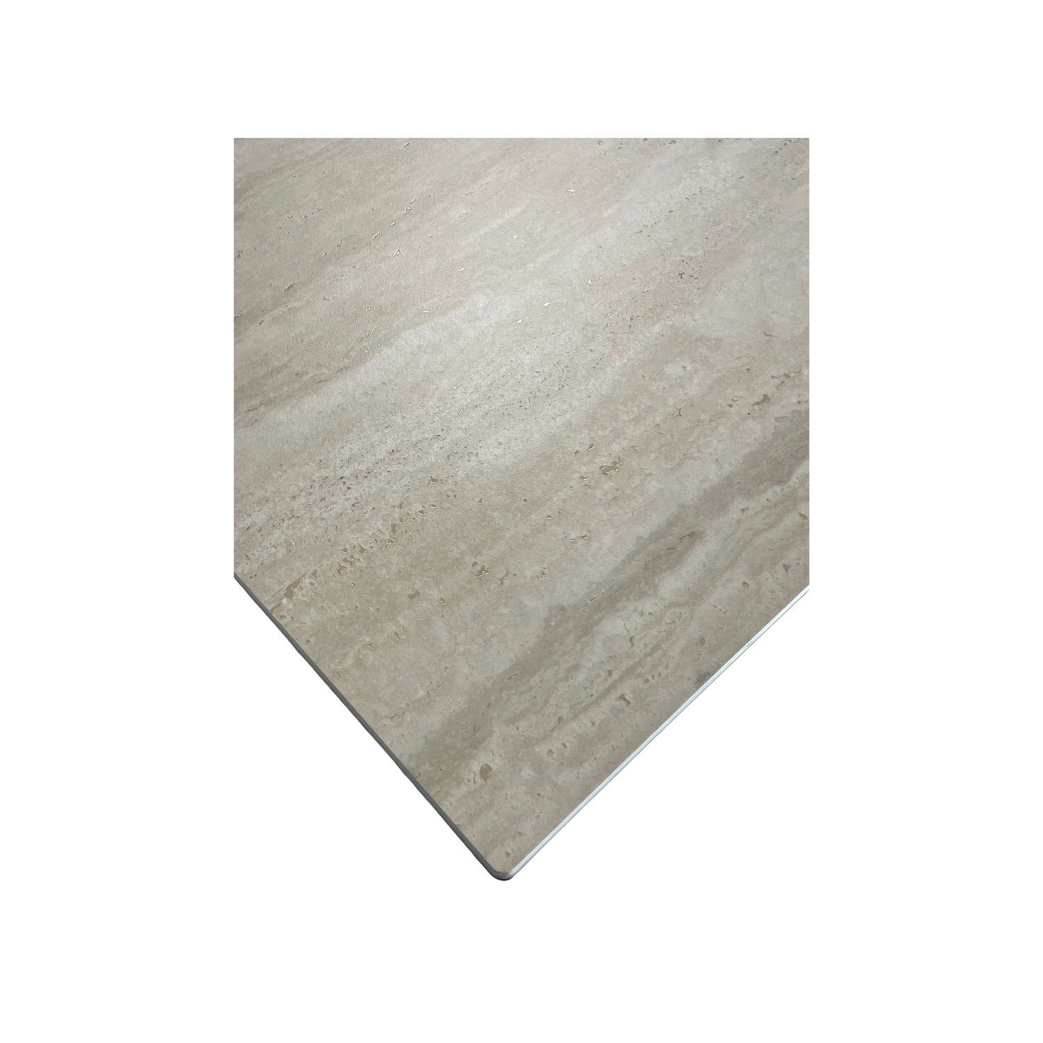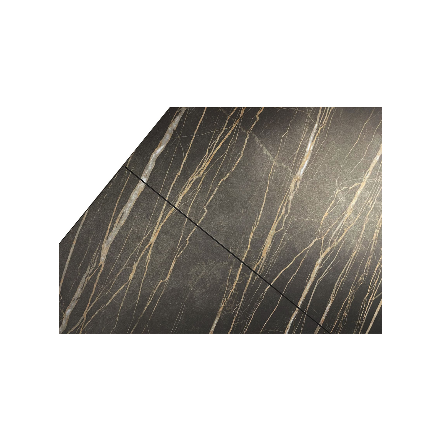 Century dining table comes in your choice of a wild noir Desir or a calming travertine ceramic top. Serves up to 12 people with its double side extensions.