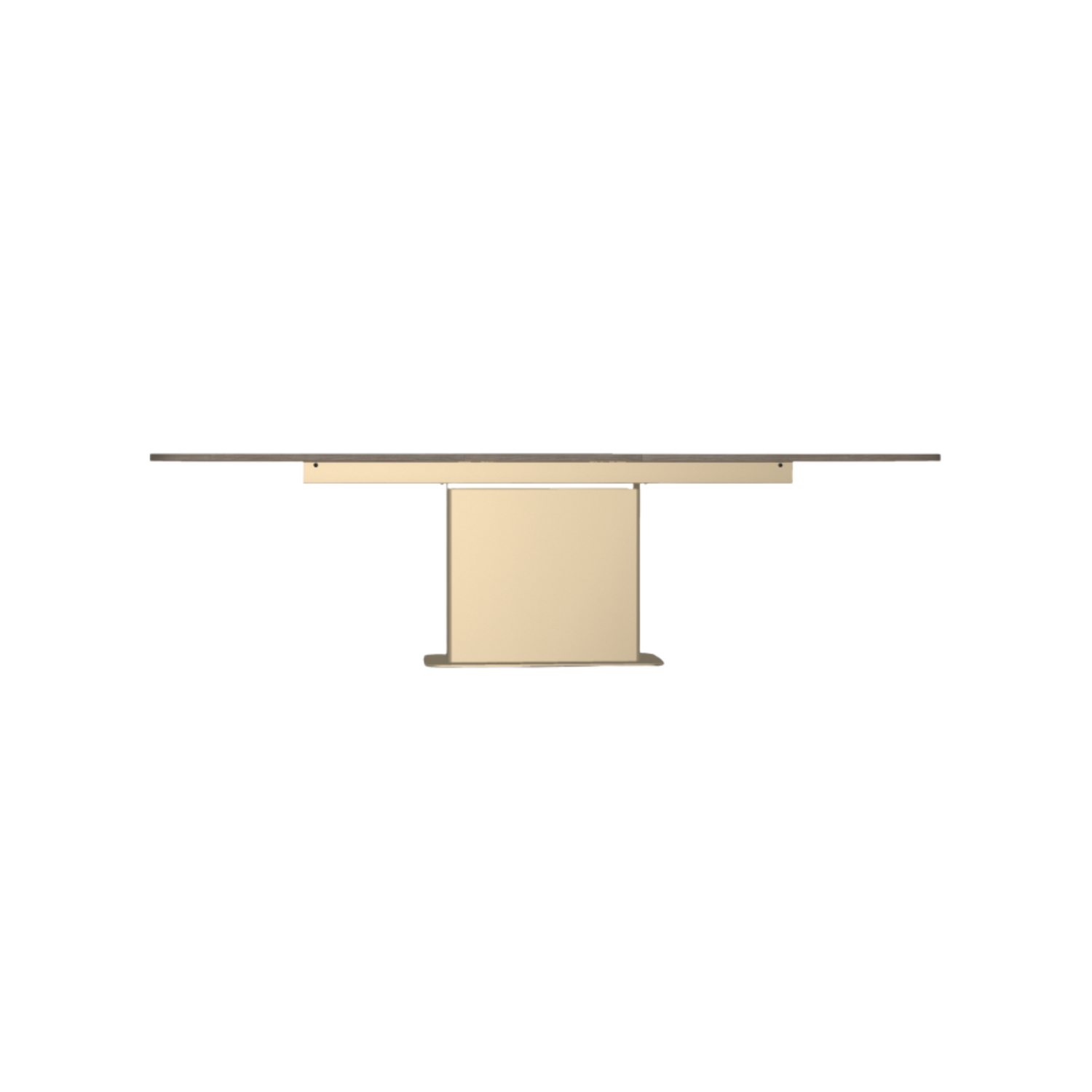 Lucarelli Dining Table – A sleek, modern design with a sturdy metal pedestal base and a seamless 24" butterfly extension. Features smooth one-person operation, built-in leaf storage, scratch-resistant powder coating, and a fully welded structure tested for durability. Made in Canada.