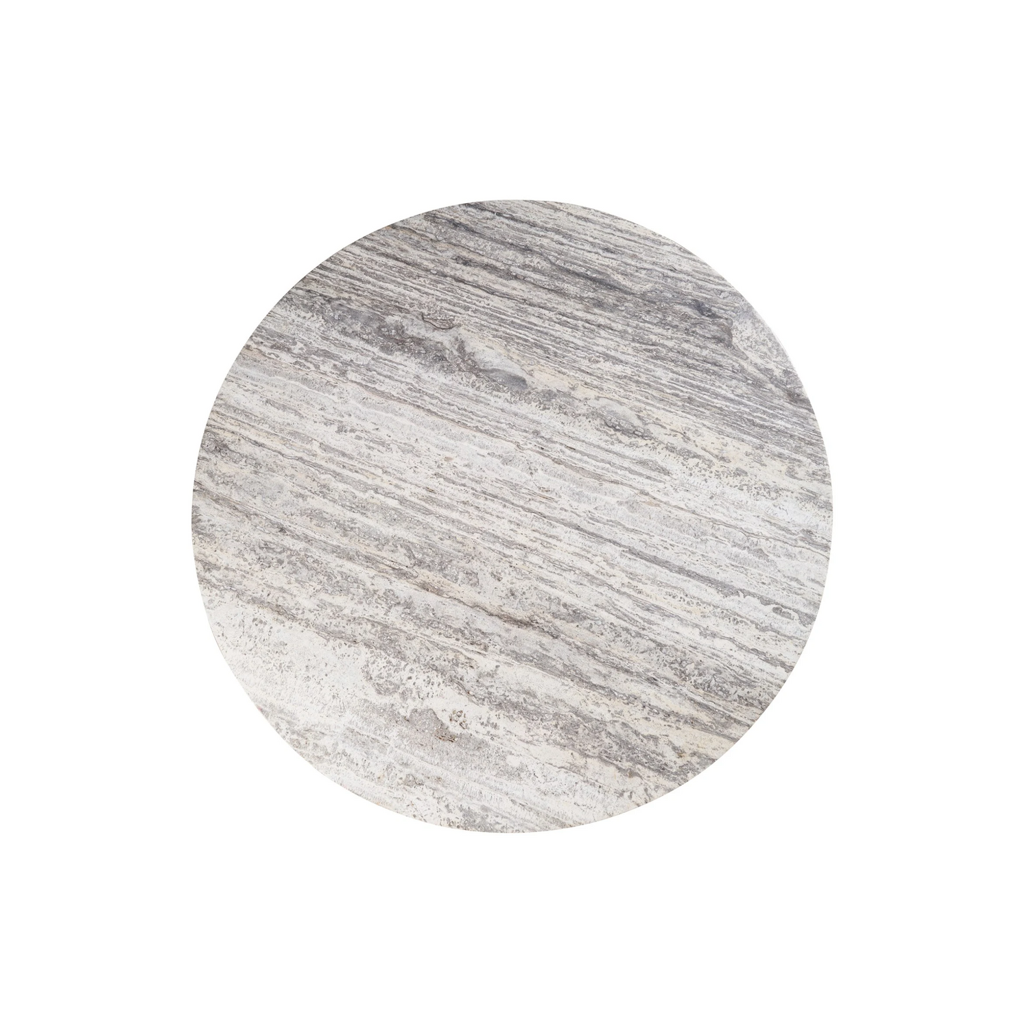 The Meadow Dining Table presents a beautifully circular form, crowned with an exquisite White Travertine surface. The base is intricately textured, giving the table a distinguished presence that enhances any dining area with an aura of graceful affluence.