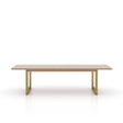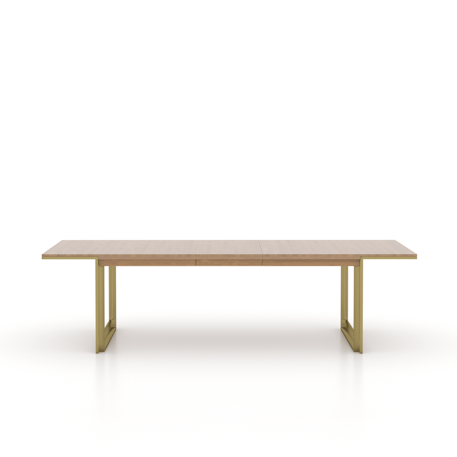This beautiful modern solid-wood table with flamboyant gold metal legs will fully enhance your dining room. It is sure to be a hit. Custom sizes and finishes are available. Made in Canada.