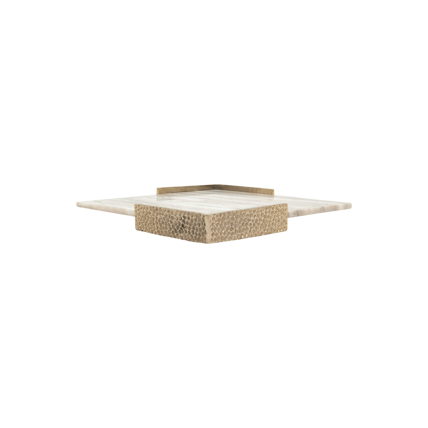 The Catano Tray blends natural beige marble with gold-toned hammered aluminum accents, creating a striking yet refined decorative piece. Its square silhouette, softened by organic veining, makes it perfect for styling coffee tables, counters, or consoles. Combining sculptural elegance with versatile design, it complements both modern and transitional interiors.
