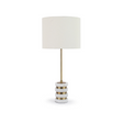 The Lena Table Lamp has a chic marble and brass striped base. This lamp works perfectly with modern decor.