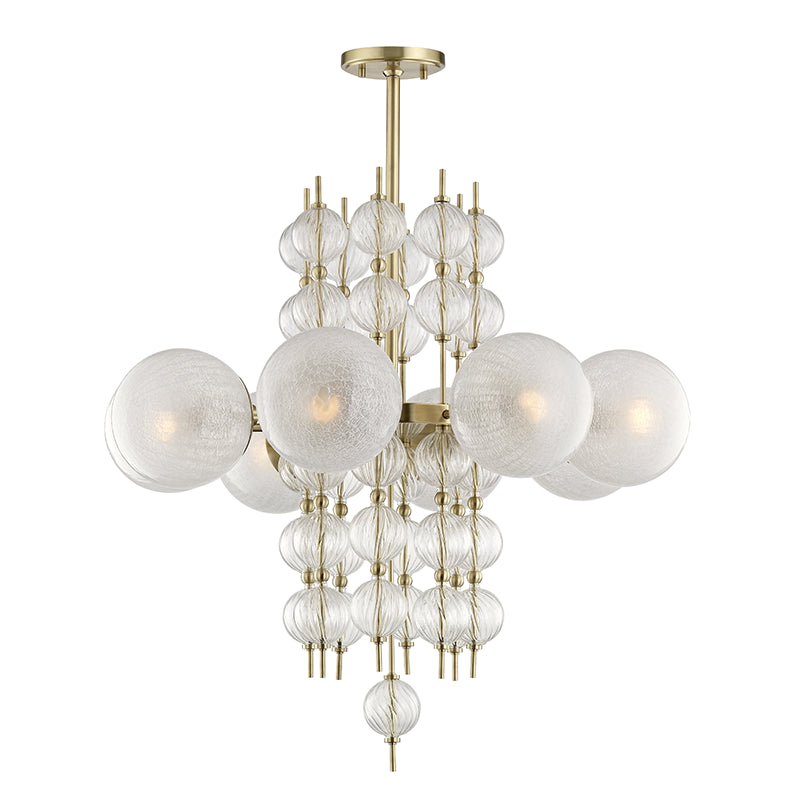 Whimsical and youthful, fresh and modern, Calypso brings big top flair to the space it lights up. A celebration of fun and geometry, its maximalist aesthetic with fluted-spiral hollow glass orbs and crackle-glass sphere diffusers makes it a wow-factor fixture which will stand out in a room with more restrained design.