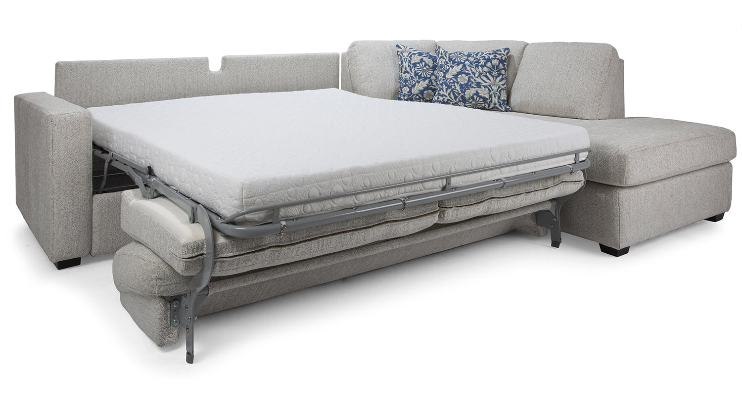 This Transformer Sleeper has transformed having over night guests. Super easy to open and go, no seat cushions to store. Premium memory gel foam mattress. Available with 2 different arm options. Available in Queen or Double sofa bed.