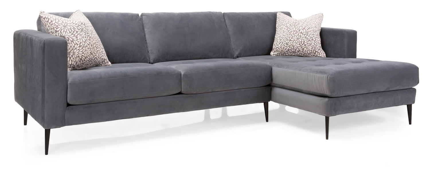 Our take on mid-century modern classic design. Inspiring awe at just a glance, the Ashton sofa with chaise is a study in artful details. With button-tufted cushions, tapered espresso wooden legs, and deep puffy seats, the chaise makes you want to lounge for days! Made in Canada.