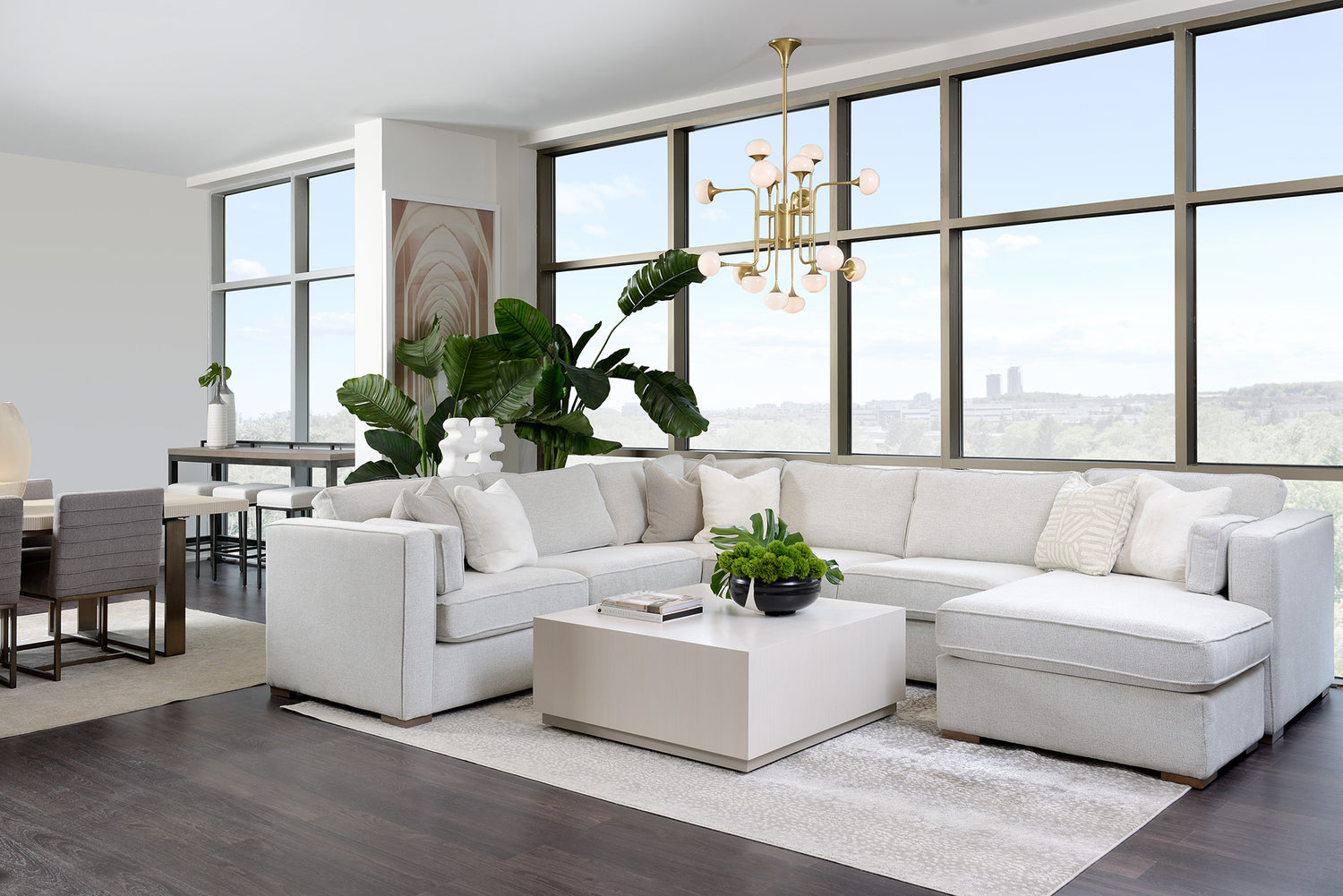 The kind of sectional that makes you want to sink in! Designed by Toronto’s own S&C, this gorgeous overstuffed sectional has lush, deep cushions, a low base, box seat, self-welt detailing and espresso wood feet. The options are limitless! Made in Canada.