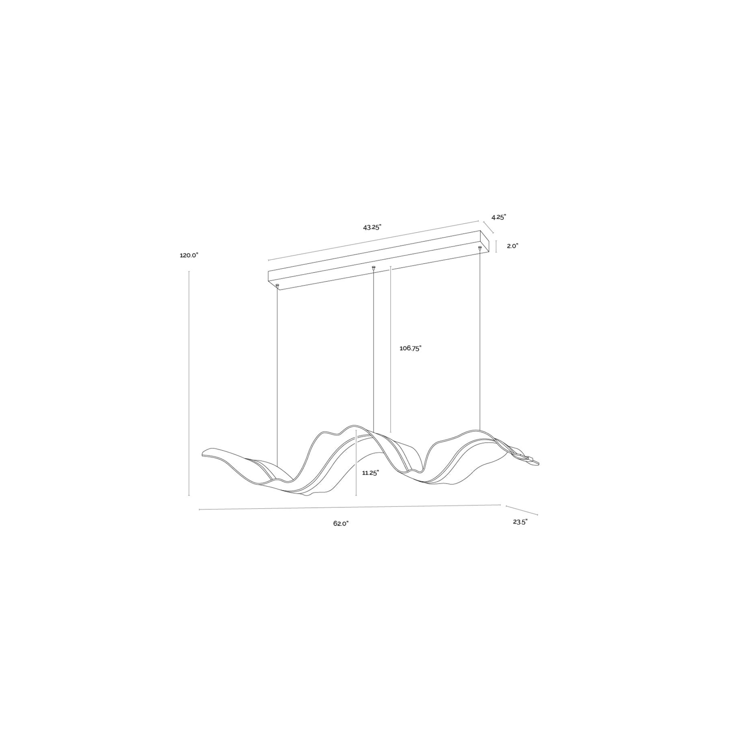 The Alun Chandelier is inspired by the rhythmic waves from your favourite beach. Its fluid form, crafted from speckled acrylic and brushed gold steel accents goes well in open spaces to impart a weightless feel for a minimal aesthetic.