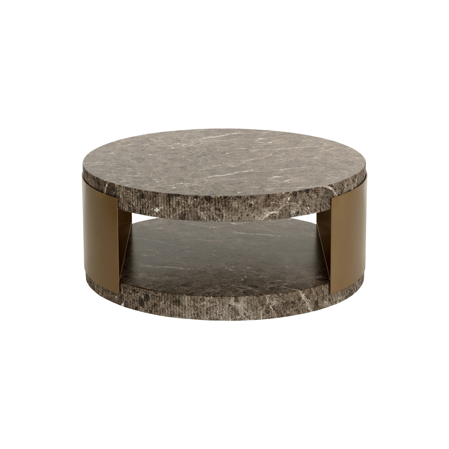 The Cavette Coffee Table combines old world influence with feminine flair. Features a ridged concrete top and base in a dark emperador marble-like finish and completed with a brass steel frame.