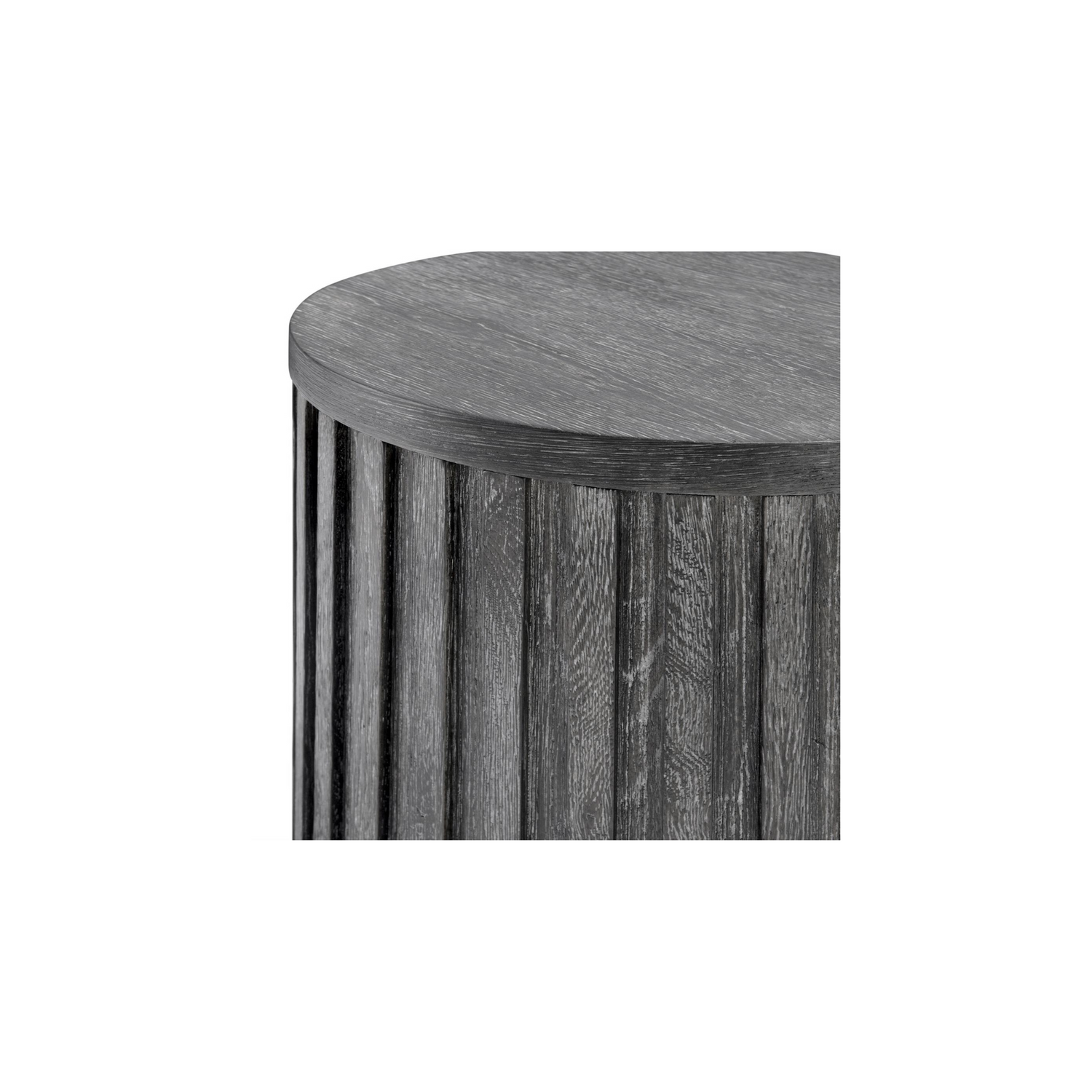Inspired by a classic drum shape, the Menton accent table features deep linear reeding on the sides and a smooth table surface. The design is casual and modern, with an elevated appeal. The deeply textured woodgrain is highlighted by our Sutton finish.