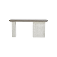 Inspired by bold architectural design, the Monolith console table is created with two structural columns in faux stone in Millstone finish. They support a wirebrushed oak top in Puma finish for a textural organic look.