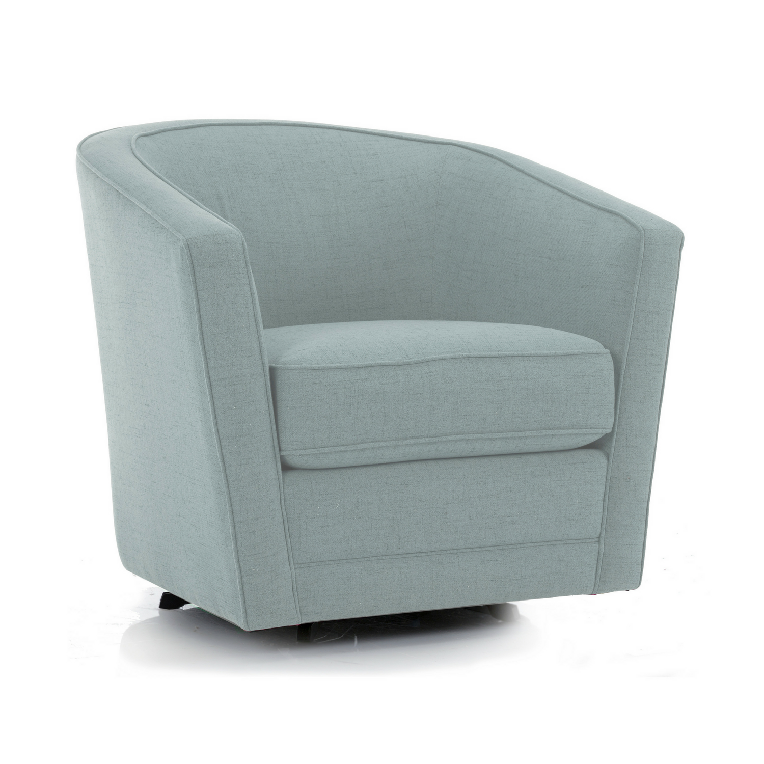 Style meets Comfort! The Emily Swivel Chair is a refined club chair on a swivel base. The Emily chair is a Zilli Home best-seller and is always a hit with the whole family. The tight back, boxed seat is lined with self-welt detailing. Made in Canada.
