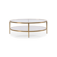 Stainless steel frame in brass finish. 10mm tempered clear glass top with 5mm antique mirror shelf.