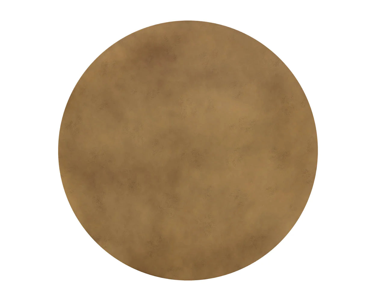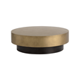 A stunning round coffee table crafted in India exudes contemporary elegance. Features a metal top with a hand-painted antique brass finish supported by a black base. Suitable for residential and commercial living and lounge environments. Coordinating end table also available. Made in India. With refined craftsmanship, this design was brought to life by skilled local artisans. By nature, these materials develop unique imperfections such as fissures, markings and colour variations for a truly one-of-a-kind piece.