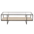 This luxe rectangular cocktail table features a beveled glass top and an open tubular steel frame for a minimalist look with a light, airy feel.