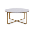 Our Polo Coffee Table has become a Zilli Home classic! A sleek brass base supports a circular marble top. Pair with our Jose Ottomans which fit perfectly clustered underneath.