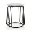 The distinguished Spangle End table has a stunning round grey and white marble top, distinctive iron base with a black finish