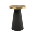 Elm wood top with stainless steel trim in brass finish. Black cement cone base.