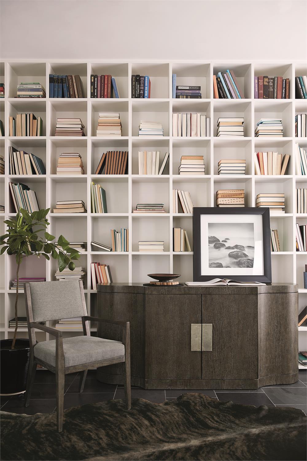 Pairing wire-brushed oak with heavily textured metal, this four-door buffet is visually unique and casually sophisticated.