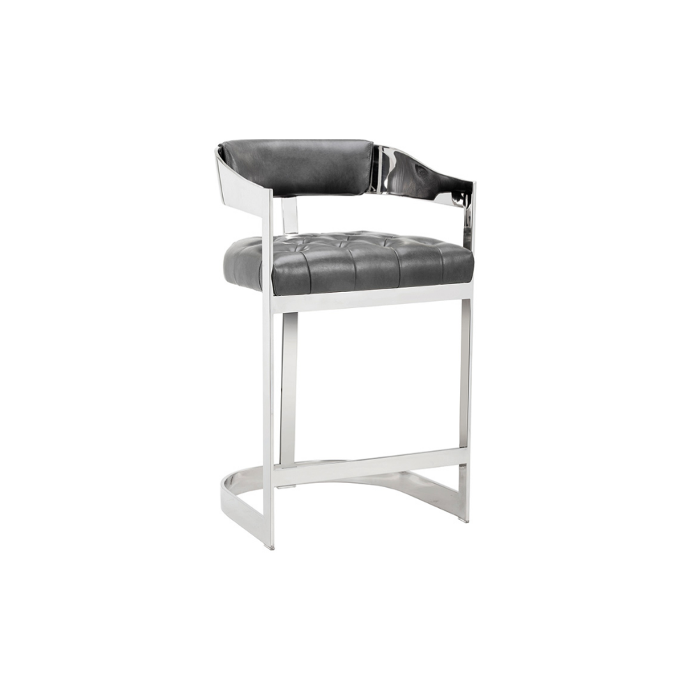 This ultra contemporary stool features and a T shaped back. Perfectly suited for your kitchen island or bar area. Make a modern statement with these stately counter stools. Durable and easy to clean bonded leather seats add to the practicality while the metal frame adds a glamorous edge.
