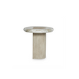 A round wood post with one straight edge pierces the organic top of the Arcadia accent table. The wire-brushed wood in Clay finish supports the faux stone top in Kalta, a finish that highlights the material's stunning veining.