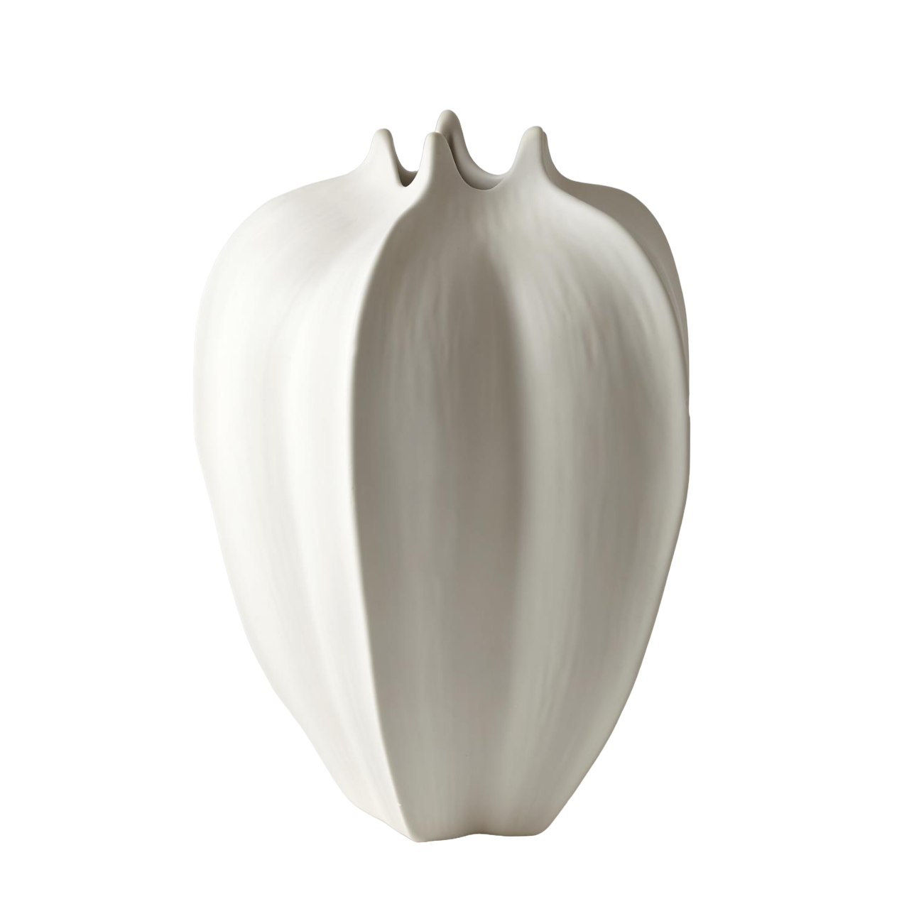 The graceful lines and fine detail of the Star Fruit Collection offer a tribute to the centuries-old craft of fine Portuguese ceramics. Evoking its namesake's five-point form, the collection brings a bit of the natural world into your home for an unexpected hint of elegance. The vase is available in a beautiful reactive green glaze or a more delicate matte white glaze(as shown) for a simpler touch.